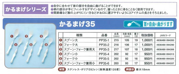 商品名 : かるまげ35 PP35-3 スプーン・フォーク兼用大 フセ企画 (食事用品 軽量 介護用品) 介護用品
