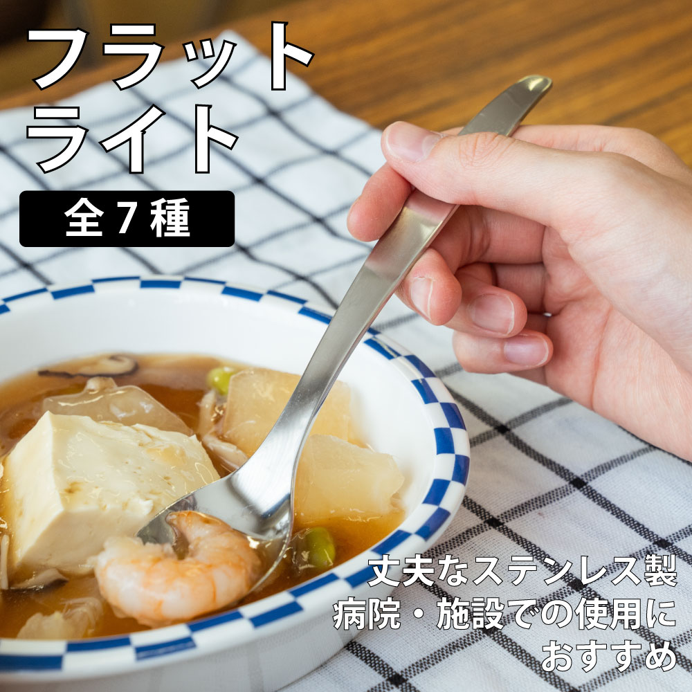 商品詳細 商品名 フラットライト フォーク 曲がり 本体サイズ L185mm スプーンヘッド部寸法 幅24×長さ41mm 素材 18-8ステンレス 重量 約29g 商品説明 ヘッドの形状にこだわった「フラットライト」シリーズ。 一般的なスプーンはヘッド部手前が浅く、奥が深くなっていますが、フラットライトはヘッド部手前側が深く奥が浅くできています。 角度も食べ物を口の中に取り込みやすいように設計されており、食べ物が残りずらく食べやすいのが特徴です。 スプーンはどの方向からも食べられる丸みのある設計で、ヘッド部は浅く小さめながら分量はしっかり確保。フォークは、食べ物が落ちにくいように先端を上向きに設計。麺類や煮物を安全に刺したり、切ったりも可能です。平たく緩やかなカーブを描くハンドルで、施設・病院での使用に適しています。 備考 ※モニターの発色具合により、実物と色が異なる場合がございます。※記載のサイズ重量は目安です。実際の商品と異なる場合もございます。 ※この商品は弊社他店舗でも販売しております。在庫数の更新は随時行っておりますが、 お買い上げいただいた商品が、品切れになってしまうこともございます。 その場合、お客様には必ず連絡をいたしますが、万が一入荷予定がない場合は、 キャンセルさせていただく場合もございますことをあらかじめご了承ください。 シリーズ一覧 フォーク スプーン フォーク曲がり 【キーワード】食べやすくて、手ごろな価格がうれしい左曲がりフォーク。丈夫なステンレス製で食洗器対応。煮沸消毒も可能で清潔に使えます。青芳 公式 Willassist ウィルアシスト 介護用品 介助用品 自助具 食事補助 麻痺 マヒ 握力低下 筋力低下 リウマチ リハビリ 療育 手首 不自由 握力が弱い サポート 食洗器対応 煮沸消毒OK 施設 病院 贈り物 プレゼント 敬老の日 両親 父の日 母の日