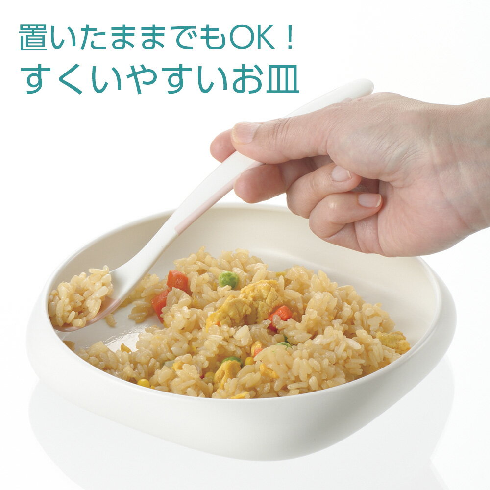 商品名 : リッチェル 自助食器 使っていいね! すくいやすいお皿 ホワイト | 介護 食器 高齢者 ケガ人 幼児 子ども 滑らない 置いたまま こぼれにくい 電子レンジOK 食洗機対応 煮沸消毒OK プレート