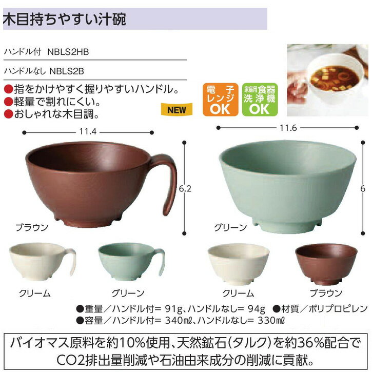 商品名 : スケーター 木目持ちやすい汁椀ハンドル付/NBLS2HB グリーン