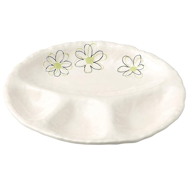 萬古焼 オーブン対応 仕切りプレート 仕切皿 ワンプレート 皿 花夢 (緑) 直径約28cm×26cm 食器