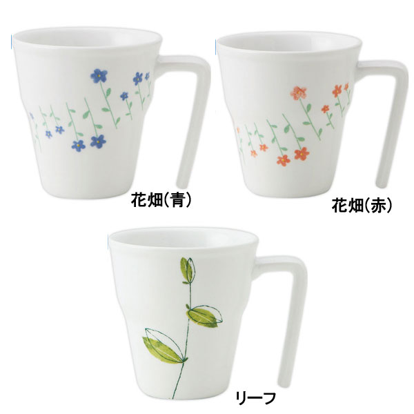 ・取っ手が大きくて使いやすいUDマグ ・取っ手の形がユニークなマグカップ。 ・手にしっかりとなじむ角度と大きさ。 ・握る力が弱くても持ちやすいよう設計されています。 ・また、収納しやすいようにスタッキングができ、スペースの限られた食器棚を有効に使えます。 ●サイズ/幅11cm×高さ8.5cm×奥行8cm ●容量/210cc ●重さ/220g ●材質/軽量強化磁器 ●カラー/花畑(青) 花畑(赤) リーフ ●JANコード/ 花畑(青):4573228331882 花畑(赤):4573228331875 リーフ:4573228331868 ●メーカー名/メープル