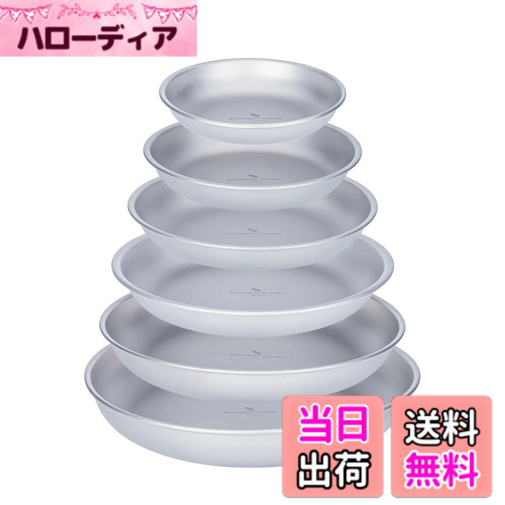 Boundless Voyage チタンプレート キャンプ皿 食器 割れない 錆びない 軽量 アウトドア 登山 BBQ バーベキュー ピクニック 自宅用 テーブルウエア お皿 メッシュ収納バッグ付き (6枚セット(6サイズ各1枚))Ti1141T