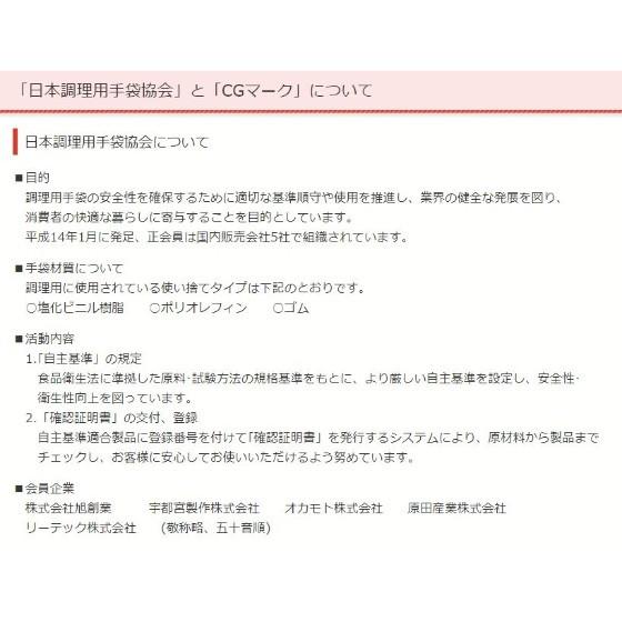 お知らせ!!現在メーカーの袋入り数変更によりお届け方法が100枚入りが2点、もしくは200枚入りが1点のどちらかのお届けとなります。1点入り、2点入りのご指定は出来ませんのでご了承ください。エンボス手袋23 ブルー Mサイズ 外エンボス加工『CGマーク』とは、お客様に安心して使用していただけるよう材質別の衛生自主基準。その自主基準に適合した製品のみにCGマークをつけ、安全、安心を提供することにしております。『CGマーク』に適合しない製品には、弱酸性(例えば食酢、糖汁、柑橘系果汁等)の食品用途には使用しないでください。製品の包装材に記載するよう取り決めて実行しております。※現行の食品衛生法ではCGマークのない製品でも、全く問題のない製品となっております。◇調理・食品加工用途に開発された食品にやさしい、ポリエチレン製手袋です。◇しなやかで伸びのある素材の手袋です。◇簡単な盛付作業などに適した経済的な手袋です。◇介護、清掃、園芸などにもお使いいただけます。◇左右両用タイプで経済的。●サイズ(全長×手のひら周囲×中指の長さ):Mサイズ (約275×約300×約83mm)●材質:LDPE(低密度ポリエチレン)●厚み:23μ●加工:外エンボス加工●入数:200枚