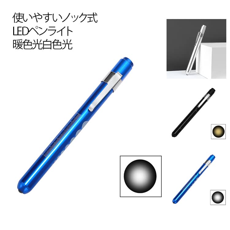 使いやすいノック式 LEDペンライト 暖色光/白色光便利で滑