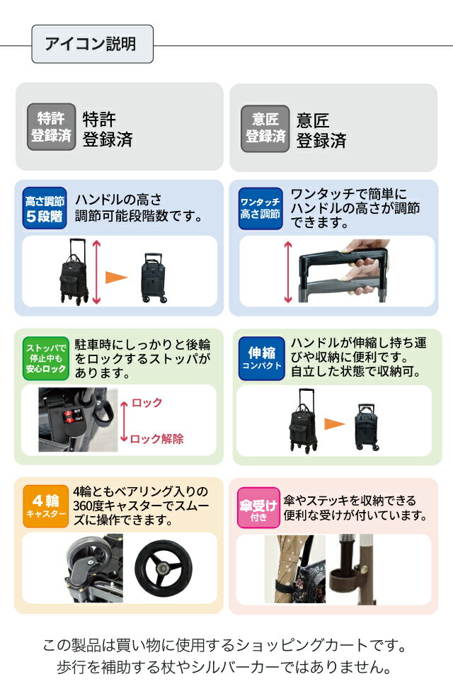 説明 足さばきも楽で歩きやすく 大きな車輪の4輪360°キャスターで楽々操作♪ 音も静かでとってもスムーズに動きます! バックは生ものや冷凍食品などのお買い物に大変便利な保冷バック仕様です! サイズ 使用時サイズ:H約68〜84×W23.5×D30.5(cm) 収納時サイズ:H約59×W23.5×D30.5(cm) ハンドル高さ:約68〜84cm 高さ調節:5段階(ピッチサイズ 約4cm) バッグサイズ:約H37×W19×D29(cm)(外寸) バッグ耐荷重:8Kg 重量:約2.3kg タイヤ直径 前輪:約10cm 後輪:約10cm 材質 ●材質 本体:アルミ タイヤ:EVA(硬質発泡車輪) ホイル:PP ●バッグ材質 表生地/ポリエステル 中綿/ポリエステルファイバー 保冷材/発泡ポリエチレン 裏生地 ナイロン 備考 お買い物時は、ショッピングカートとして、お役立ていただけます。 この製品は、リハビリテーション用ではありません。 万が一在庫がない場合は、追加入荷までお待ち頂く場合もございます。その際は、当店よりご連絡させて頂きますので予めご了承下さい。 離島、一部地域は別途送料がかかる場合がございます。 ご注文時には、足されておりませんが、後程、別途送料を足した金額を当店よりご連絡致します。 ご了承ください。 ☆シルバーカー色々取り揃えています ☆その他の島製作所のシルバーカー ☆その他の幸和製作所のシルバーカー ☆その他の須恵廣工業のシルバーカー ☆その他の象印ベビーのシルバーカーレインカバーはご一緒にいかがでしょうか? ★対応商品はこちら↓ 【Mサイズ】ショッピングカート用レインカバー 【単品】 ≫シルバーカー 一覧はこちら! ▼ シルバーカーのタイプ別で探す!▼ ≫スタンダードタイプ ≫ミドルカータイプ(中型) ≫コンパクトカータイプ(軽量) ≫アルミカー ≫レインカバー付き ≫座れるタイプ ≫前輪3WAY スリーウェイ ≫前輪2WAY ツーウェイ ≫買い物かご受け有り ≫大容量 ≫男性用シルバーカー ≫サイドカー 一覧はこちら! ▼ サイドカーのタイプ別で探す!▼ ≫お買い物用 ≫旅行用 ≫360度回転キャスター ≫2WAYキャスター ≫3WAYキャスター ≫レインカバー付き ≫ステッキ 一覧はこちら! ▼ ステッキのタイプ別で探す!▼ ≫一本杖 ≫四点杖 ≫折りたたみ式杖 ▼ その他のおすすめ商品 ▼ ≫リクライニングチェア ≫手すり ≫歩行器・歩行車 ≫酸素ボンベカー