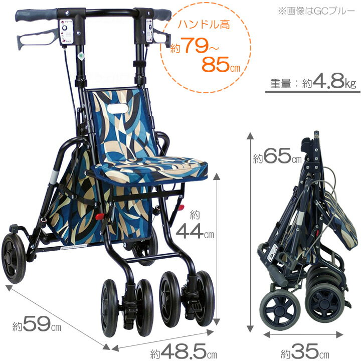 ※CGブラウンのお色は販売を終了いたしました。 色違いはこちら>>>(フローラルBE)NEW! あると便利なコンパクト車いすの新商品○アルミフレームで軽量、持ち運びに便利○ブレーキレバーを握ればブレーキ、下に倒せば駐車ストッパーの便利な手元2WAYブレーキシステム○左右どちらか片方だけのブレーキ操作でも両後輪にブレーキがききます○ワンタッチでハンドル部から折りたためる楽々タイプ○3段階高さ調整○前輪キャスター付で方向転換もスムーズ○最大使用者体重:80kg○バッグ耐荷重:2kg○タイヤの大きさ:前輪 約14.5cm、後輪 約14.5cm<材質>○車体:アルミ車体(粉体塗装仕上げ)○タイヤ:EVA○ホイル:PP○バッグ:ポリエステル仕様表詳細認定マーク:SGマーク 使用時サイズ:約高さ79〜85×幅48.5×奥行59cm高さ調節:3段階(ピッチサイズ:約3cm)重量:約4.8kg座面高:約44cm収納サイズ:約高さ65×幅48.5×奥行35cmバッグサイズ:約高さ30×幅26.5×奥行14cm(外寸)規格1台 ケンクル(kenkul)では他にも多くのシルバーカーをご用意しています 軽量で持ち運びに便利お散歩にも最適大きめの袋やかごが付いてお買い物に便利幅が広めでしっかりとした安定感がある体重を支えながら移動できる