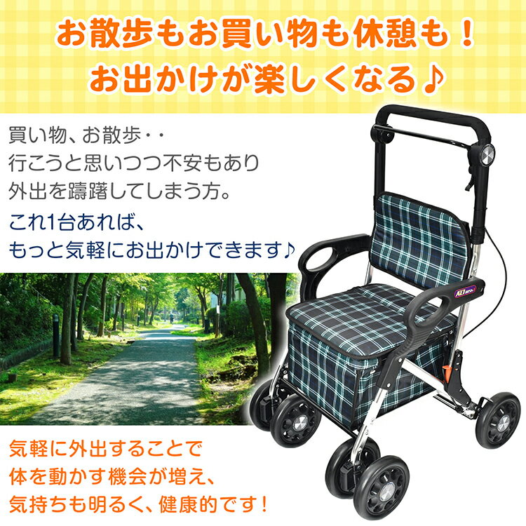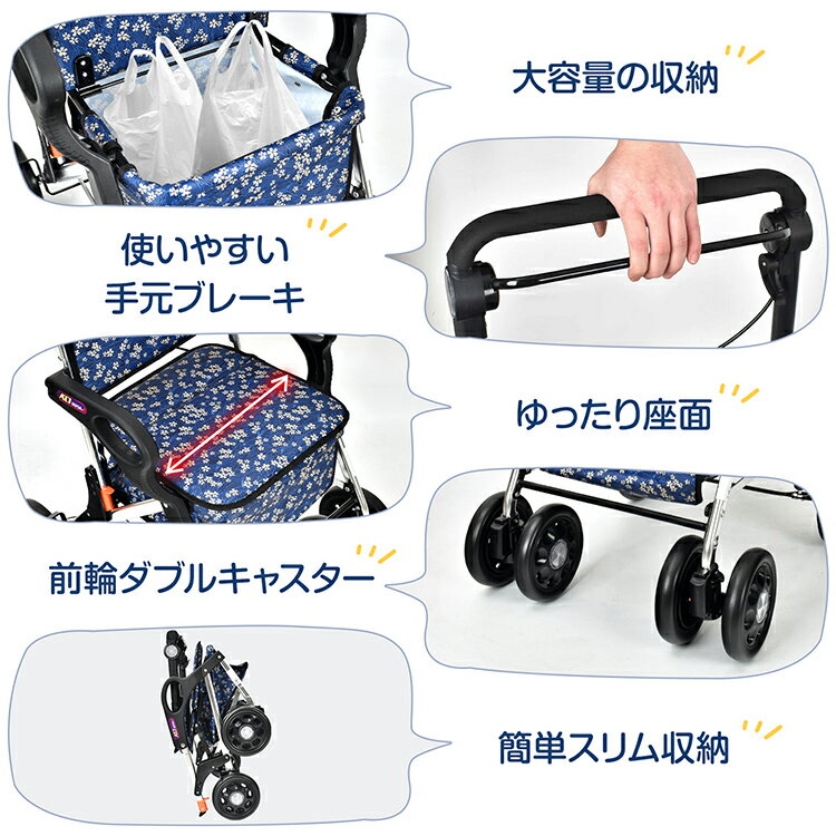 商品名 : シルバーカー 座面 休憩 買い物 ショッピングカート 歩行補助 散歩 カート 手押し車 座れる 歩行介助 補助具 収納 23L 大容量 折り畳み 折りたたみ スリム収納 買い物 お散歩 お出かけ 休憩 敬老の日 ギフト
